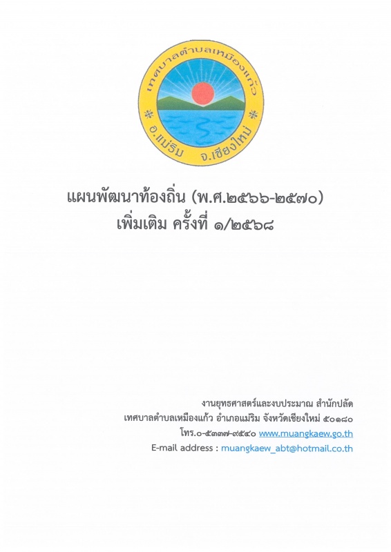 แผนพัฒนาท้องถิ่น พ.ศ.2566 - 2570 เพิ่มเติม ฉบับที่ 1/2568