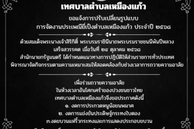 ขอประชาสัมพันธ์แจ้งการปรับเปลี่ยนรูปแบบการจัดงานประเพณียี่เป็งตำบลเหมืองแก้ว ประจำปี 2568