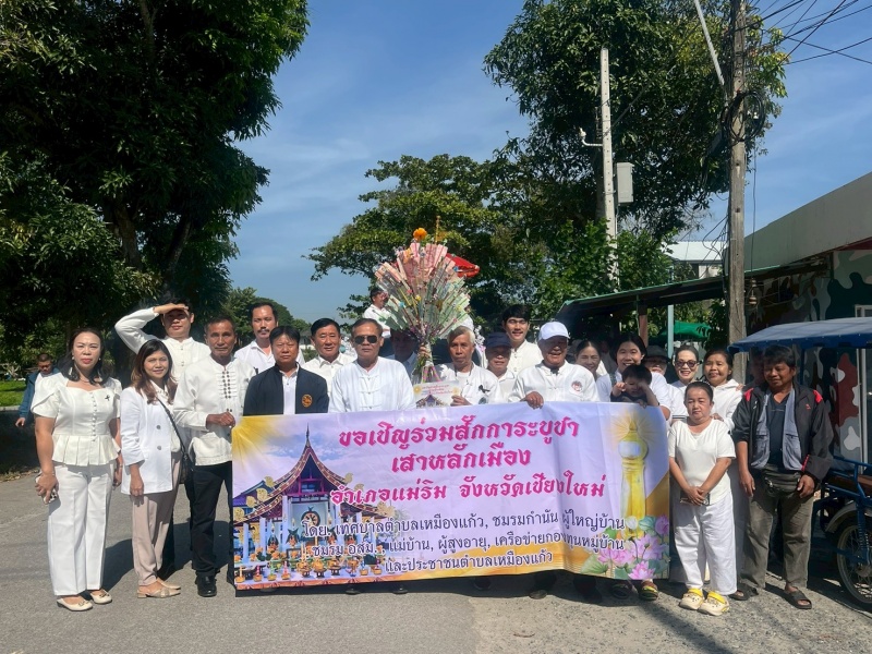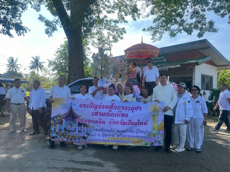 นายเสถียร จันทรา และ นายพันธ์ ปันธิมา รองนายกเทศมนตรีตำบลเหมืองแก้ว พร้อมด้วยปลัดเทศบาลตำบลเหมืองแก้ว สมาชิกสภาเทศบาลเขต 1 - เขต 2 และพนักงานเทศบาลตำบลเหมืองแก้ว เข้าร่วมพิธีแห่สมโภชเสาหลักเมืองอำเภอแม่ริม เคลื่อนสู่จุดต่างของหมู่บ้านภายในตำบลเหมืองแก้ว