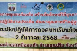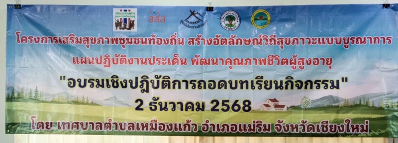 ในวันอังคาร ที่ 2 ธันวาคม พ.ศ.2568 งานพัฒนาชุมชน สำนักปลัด เทศบาลตำบลเหมืองแก้ว ร่วมกับ สำนักงานกองทุนสนับสนุนการสร้างเสริมสุขภาพ (สสส.) ได้ดำเนินการขับเคลื่อนงานโครงการเสริมสุขภาพชุมชนท้องถิ่น สร้างอัตลักษณ์วิถีสุขภาวะแบบบูรณาการ "อบรมเชิงปฏิบติการถอดบทเรียนกิจกรรม" ณ ห้องประชุมเทศบาลตำบลเหมืองแก้ว ต.เหมืองแก้ว อ.แม่ริม จ.เชียงใหม่