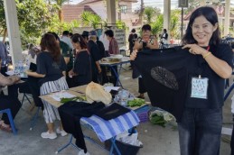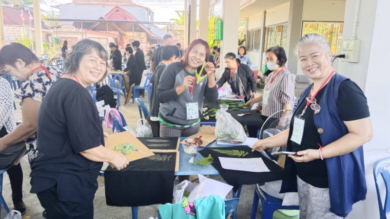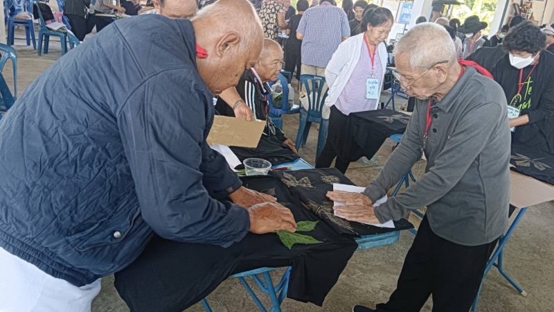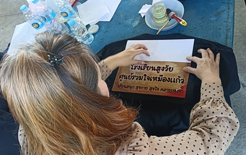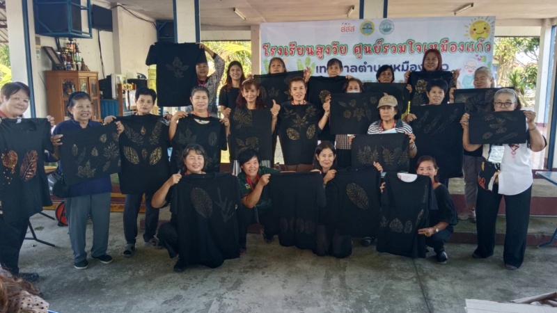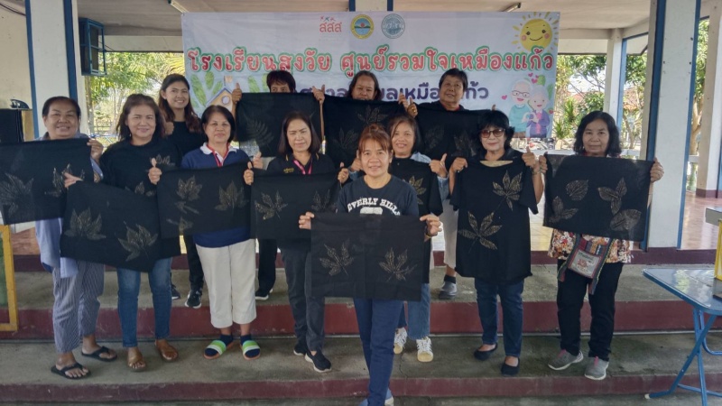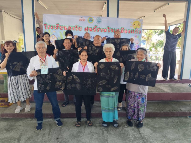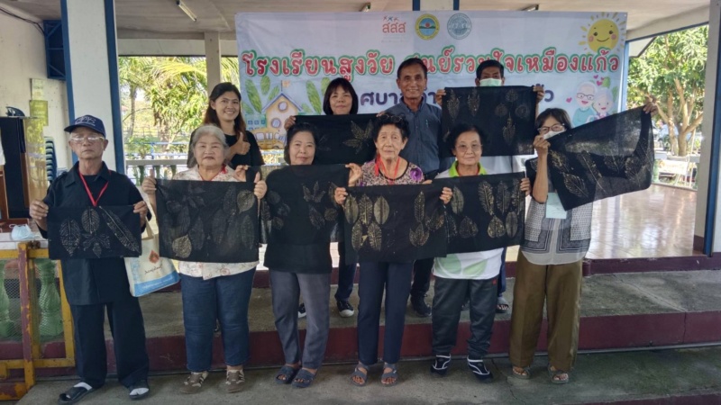 โดยวิทยากรได้นำผู้สูงอายุของโรงเรียนทำกิจกรรมต่าง ๆ เช่น การร้องเพลงชาติ , การสวดมนต์ไหว้พระและแผ่เมตตา , การสาธิตและฝึกอบรมการสกรีนเสื้อสีดำจากลวดลายใบไม้ เพื่อให้ผู้สูงอายุมีพื้นฐานความรู้ด้านการสกรีนเสื้อและสามารถนำไปต่อยอดด้านการประกอบอาชีพเสริมได้