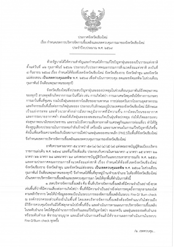 เชียงใหม่ "ไม่เผา" 1 มกราคม ถึง 31 พฤษภาคม 2569