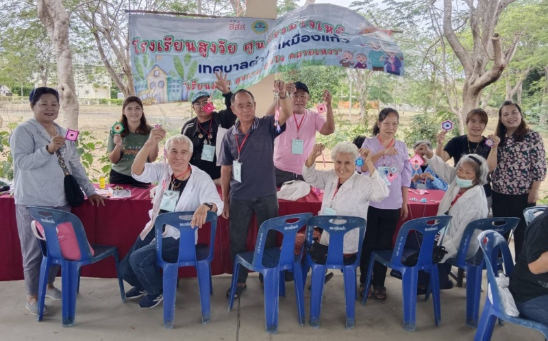 โดยวิทยากรได้นำผู้สูงอายุของโรงเรียนทำกิจกรรมต่าง ๆ เช่น การเคารพธงชาติ , การสวดมนต์ไหว้พระ , กิจกรรมนันทนาการ , การให้ความรู้และฝึกประดิษฐ์ตุงใยแมงมุม
