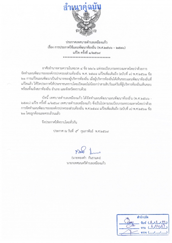 ประชาสัมพันธ์ประกาศแก้ไขแผน ครั้งที่ 1 ประจำปีงบประมาณ พ.ศ.2569
