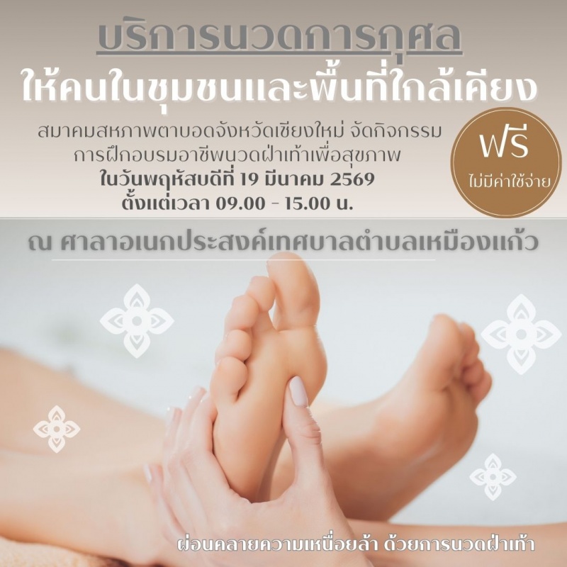 จึงขอประชาสัมพันธ์ให้แก่ผู้ที่สนใจ ได้เข้ารับบริการนวดฝ่าเท้าเพื่อสุขภาพในวันและเวลาดังกล่าว