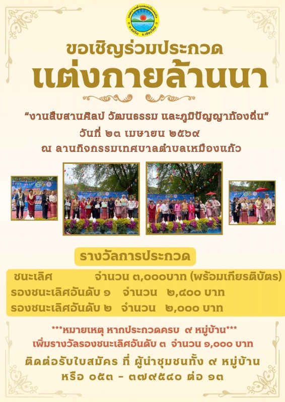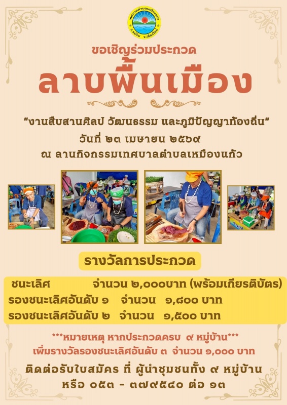 ขอประชาสัมพันธ์กิจกรรมการแข่งขัน"งานสืบสานศิลปวัฒนธรรม และภูมิปัญญาท้องถิ่น ประจำปี 2569"